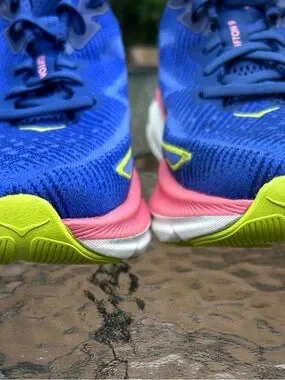 The Hoka Women's Size 8.5 Clifton 9 Blue Coral Mesh Running Shoe is a stylish and comfortable athletic sneaker perfect for women who enjoy running or other physical activities. Featuring a breathable mesh upper, cushioned support, and arch support, this shoe is designed for all-day wear and optimal performance. The vibrant blue and coral color scheme adds a colorful touch to your workout attire, making you stand out while staying comfortable and supported. With its cushioned design, breathable features, and supportive elements, this shoe is a great choice for any season of the year.