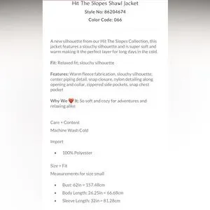 Free People Hit the Slopes Shawl Jacket Size Medium NWT