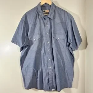 Vintage 90's Big Mac Blue Shirt Chambray Work Wear Pearl Snap Size 2XL Big USA