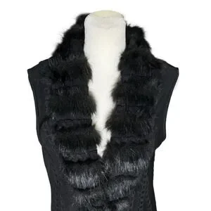 Crafted in a rich black knit with a flattering tailored silhouette, this sleeveless vest is finished with a plush faux fur trim for an elevated, sophisticated look. Perfect for layering over blouses, turtlenecks, or dresses for a polished, high-end aesthetic.