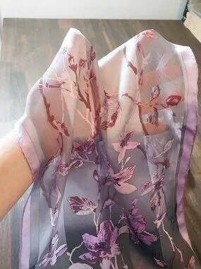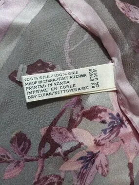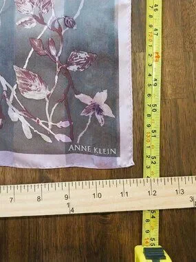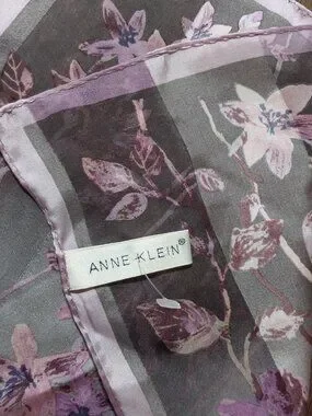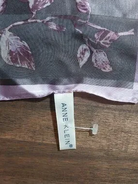 100% Silk Scarf Pink Brown Gray Floral Oblong 11x52 Lightweight by Anne Klein. New without tag. Small fabric distress on scarf corner shown in picture. Please see all pictures for item measurements and condition. Buy today will ship next business day.