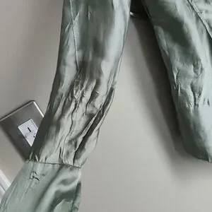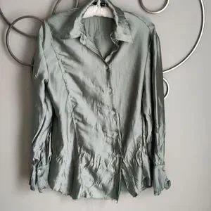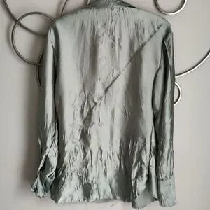 Crinkle, silky top from Zara has rough edges, diagonal buttons down and loose sleeves. EUC. Size s. Ptp 18". Top to bottom 28".
