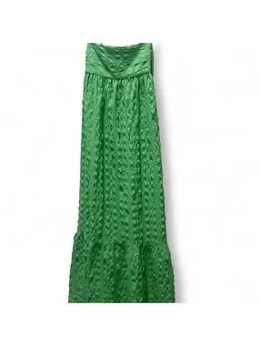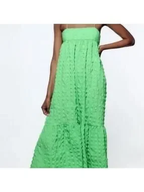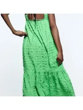 Zara green maxi textured dress with open back