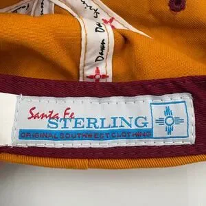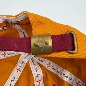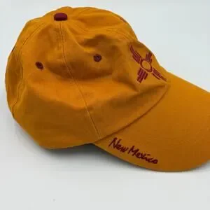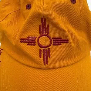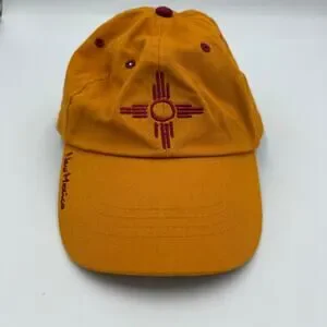 This eye-catching hat proudly features the iconic Zia symbol, representing the rich cultural heritage and breathtaking beauty of New Mexico. The striking gold and red color combination adds a touch of boldness to any outfit, making it a fantastic accessory for both casual days and showing off your state pride. The brand is Santa Fe Sterling Clothing company