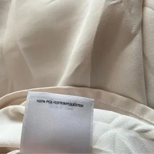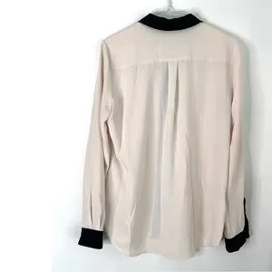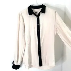 Anne Klein Nude Career Blouse Black Trim Button Down Curved Hem Workwear Top