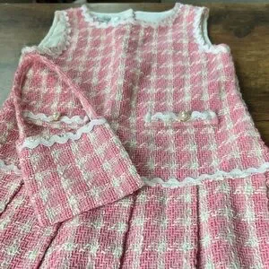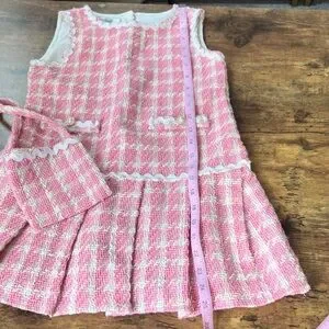 Badgley Mischka Pink and Cream Textured Girl’s Dress w/ Matching Purse Size 8