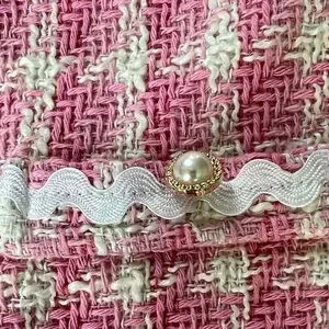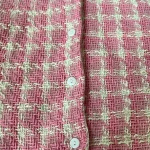 Chic dress with pink and cream textured design. Perfect for stylish events. Matching Purse.