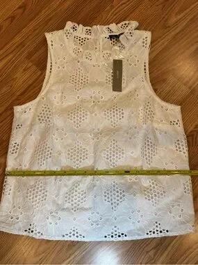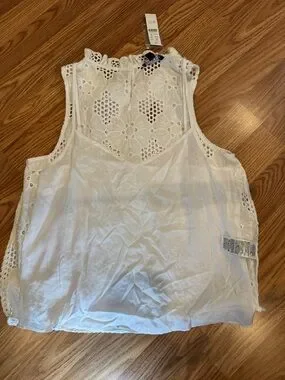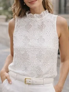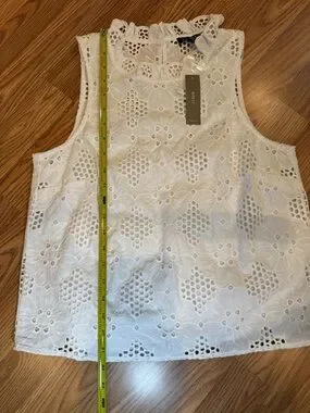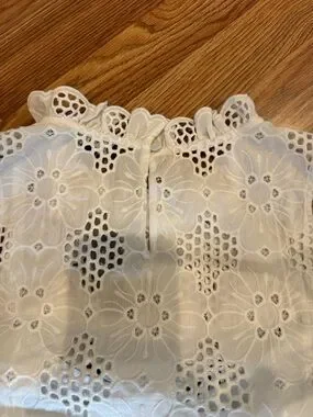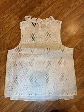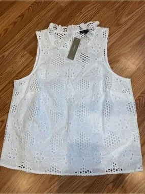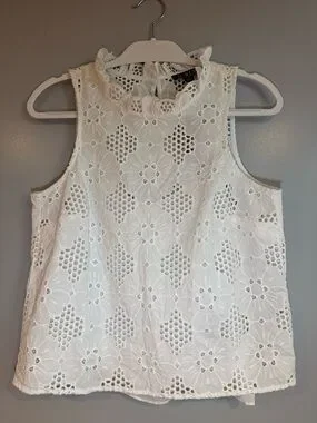 J.CREW White Floral Lace Ruffle High Neck Sleeveless Blouse Women’s XS