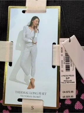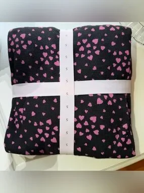 Victoria's Secret Black Thermal Pajama Set with Pink Heart Print