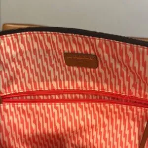 Stella & Dot Striped Black and White Tote Bag with Brown Accents