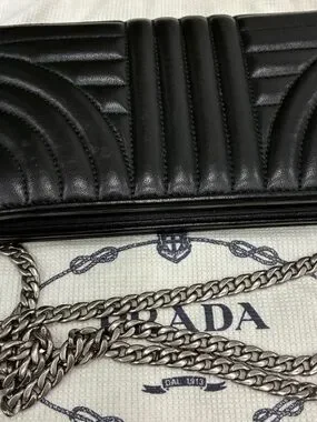 Prada Black Quilted Leather Chain Wallet-authentic