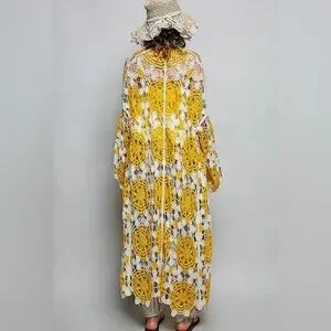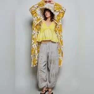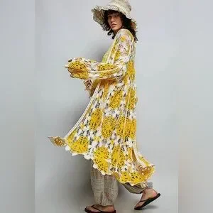 NEW Pol Maxi Long Sleeve Crochet Open Cardigan in Yellow