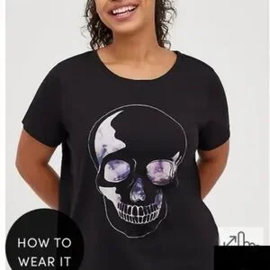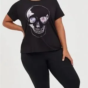 torrid Black Tee with Marble Skull Graphic