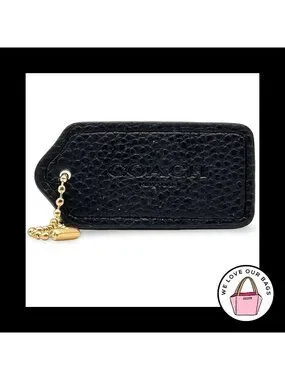 2.25" COACH NEW YORK Black Pebbled Leather Brass Fob Bag Charm Keychain Hang Tag