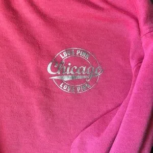 Chicago loves pink Bright pink long sleeve tee. Features silver 'LOVE PINK' text on sleeve. Comfortable and stylish.