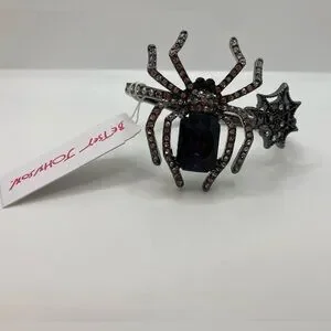 BETSEY JOHNSON Spider Purple Gem Rich Witch Crystal-Studded Hinged Bracelet NEW