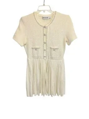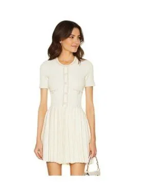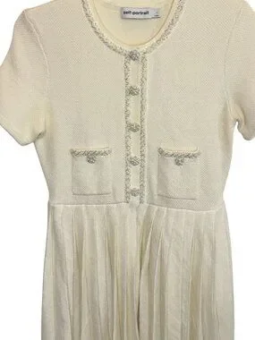 Self Portrait White Cream Knit Mini Dress - Size L