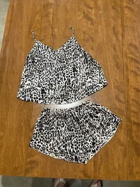 ASOS Leopard Print Satin Tank Shorts Pajama Set Leopard Cheetah Animal Print