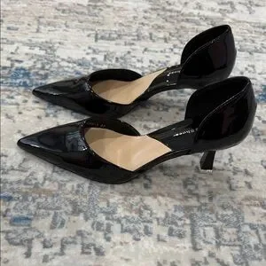 Step out in style with these sleek black leather heels. Perfect for any occasion, these shoes offer both elegance and comfort.