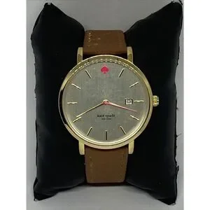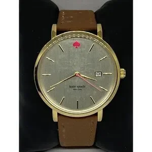 Kate Spade New York 0009 Womens Brown Leather Analog Gold Dial Wrist Watch, 38 mm