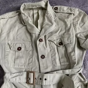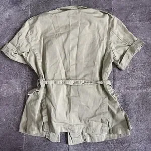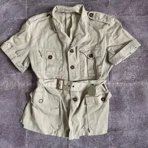 Women's Vintage 70's Original Light Sage Belted Short Sleeved Safari Jacket Sz L