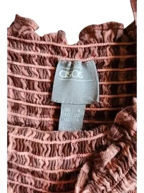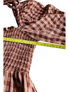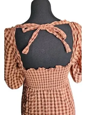 ASOS Gingham Smocked Midi Dress Cottagecore Puff Sleeve Open Back Size US 4