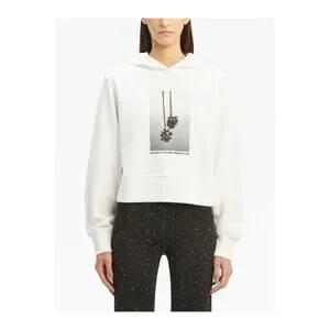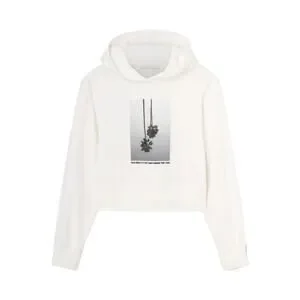 Palm Angels hoodie in off white fleece cotton with Mirage print at front, long sleeves, elasticated waistband and cuffs and tight fit. Originally purchased from Vitkac.com.