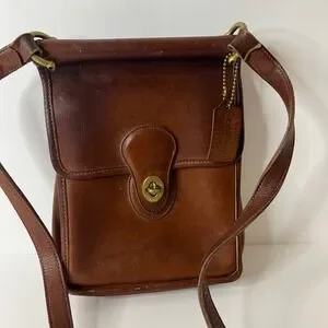 Vintage Coach Murphy Turnlock Leather Crossbody Bag British Tan Leather