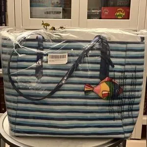 Kate Spade Schuyler Wave Stripe Medium Tote With Fish Charm $359