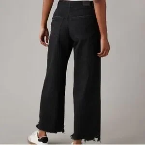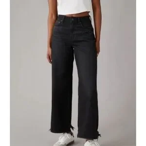 American Eagle Womens Super High Rise Baggy Wide Leg Ankle Jeans Black Sz 12 R