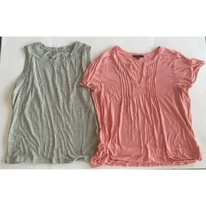This lot includes a Banana Republic grey tank and pink tee in size XL. The tank is designed for women and features a stylish gray color. This versatile set can be easily paired with different bottoms to create a variety of stylish outfits. Perfect for everyday wear or dressing up for a special occasion, these tops are a great addition to any woman's wardrobe. Excellent condition