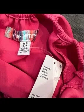 Bright pink dress with Lightweight, smooth fabric. Casual, easy-to-wear style.