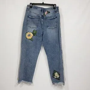 Wild Fable Upcycled Re-worked Jeans Floral Flowers Cottagecore Grandmacore Sz 8