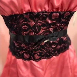 Y2K Pink Ruffled Dress with Black Lace Waist size L