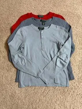 Lot of 4 Lauren Ralph Lauren Petite S Ribbed Henley Long Sleeve Tops