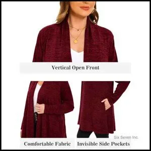 Open Front Cardigan Knit Sweater Oversized Loose Fit Long Sleeve with Pockets