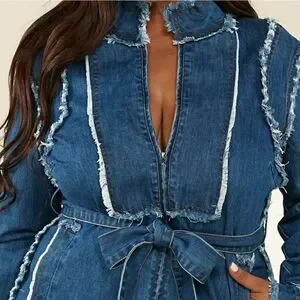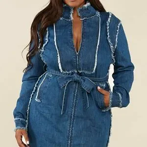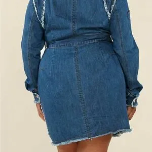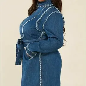 L'Atiste Plus Size Dress Frayed Trim Denim