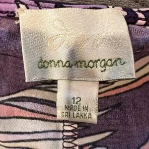 This beautiful Donna Morgan dress is perfect for any occasion. The rich purple color and delicate floral pattern make it a stunning choice for women who want to look their best. With a long sheath style and knee-length hem, this dress is both elegant and comfortable.