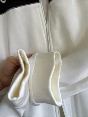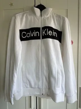 Calvin Klein Men’s White Zip-Up Jacket with Black Logo Panel, Large
