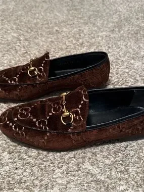 Gucci Brown Velvet Horsebit Loafers