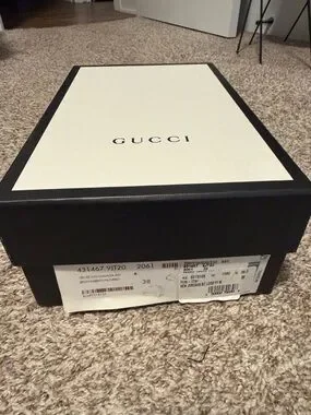 Rich brown velvet uppers with tonal GG pattern. Gold-tone horsebit hardware across the vamp. Slip-on design with a refined silhouette. Elegant finish suited for dress and smart-casual looks.