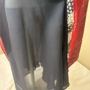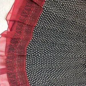 Fully lined pleated skirt. Light and floaty with a red black and cream paisley print.