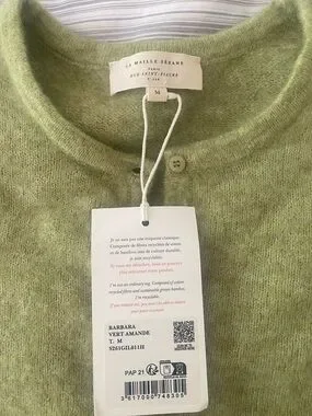 Brand new with tags Sézane Barbara cardigan in the beautiful almond green color. Size medium. PTP is 18” and length is 19.5”. I love the sweater but unfortunately is a little too cropped for me. Purchased directly from Sézane and is sold out online. Comes from pet and smoke free home.