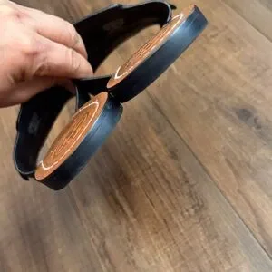 Tory Burch Black Leather Slide Sandals with Tan Footbed