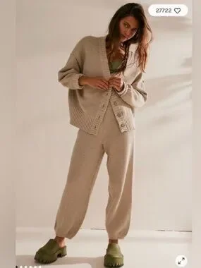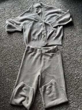 Both size XL. Tan in color. Cardigan and bottoms. Knit material. Free people beach.