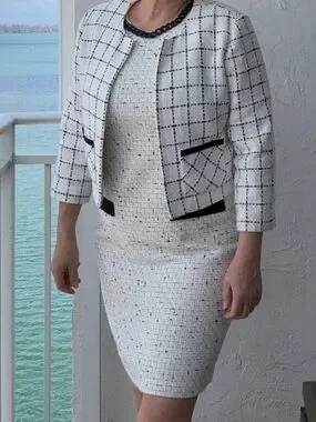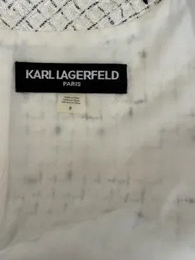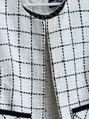Karl Lagerfeld Tweed Dress Suit Set Size 8 Black White Chanel Style