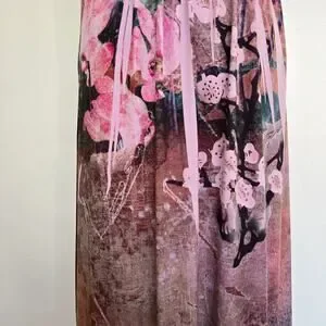 Multicolor floral earthy print in purples, red, pinks, green, browns