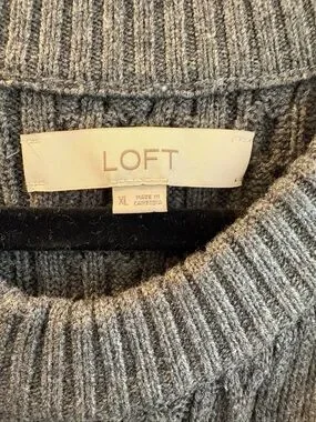 LOFT Gray Ribbed Knit Crewneck Sweater NWOT
