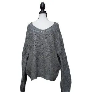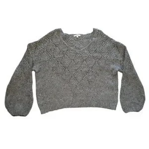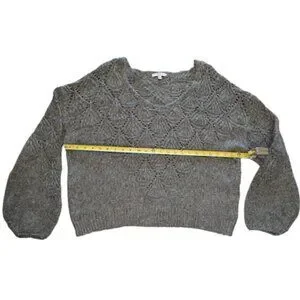 Q&A Gray Textured Knit Balloon Sleeve Sweater Wool Blend – Size XL