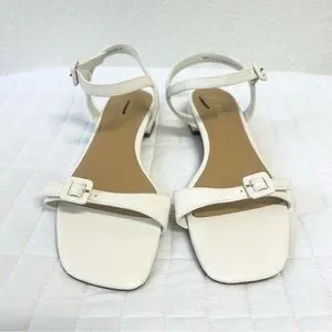 J. Crew Factory Textured Ankle Strap Block Sandals in Ivory White Size 6 spring